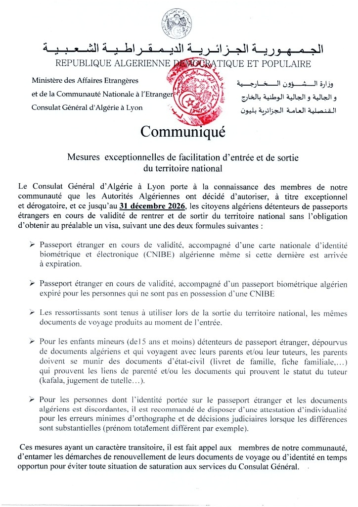 Mesures de facilitation d’entrée et de sortie du territoire national : année 2026